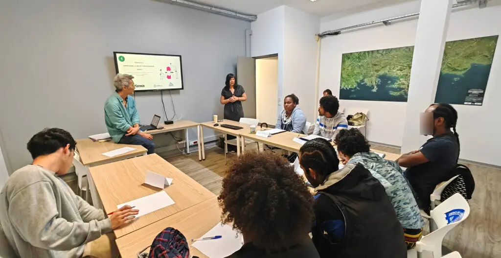 Ils ont une douzaine à suivre lundi 7 septembre le troisième atelier sur quatre que compte le programme « Mobilisation autour du projet ». Un atelier consacré à la communication assertive et non-violente. Il s’agit de la 4e session MAP organisée par la DEL depuis août. Piloté par Hanvie, ce programme d’insertion professionnelle a été revisité pour l’édition 2024 explique Rébecca Minana, directrice d’Hanvie. « Nous avons créé ces ateliers en collaboration avec la direction de l’Emploi et du Logement en 2016 et nous y avons ajouté de nouvelles thématiques cette année par rapport aux exactions, sur la confiance en soi et la gestion des émotions. »