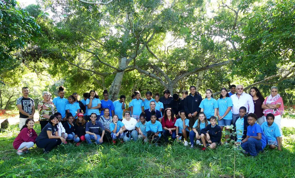 Munis de pelles, bêches et de gel hydro-rétenteur, les jeunes n’ont pas ménagé leurs efforts pour planter 100 plants de forêt sèche en à peine deux heures. Ce sont les élèves de 4e du groupe Aire Éducative Environnementale et du groupe Environnement du collège Sacré-Cœur de Bourail. Dans cet établissement, l’environnement, c’est du sérieux. Joëlle Le Breus-Cadiou, la directrice, explique : « Nous avons obtenu le niveau 1 et le niveau 2 de développement durable. Et il y a trois ans, nous avons inscrit à l’emploi du temps des élèves, le développement durable comme matière au même titre que le français ou les maths. Les compétences y sont évaluées comme pour les autres matières. »