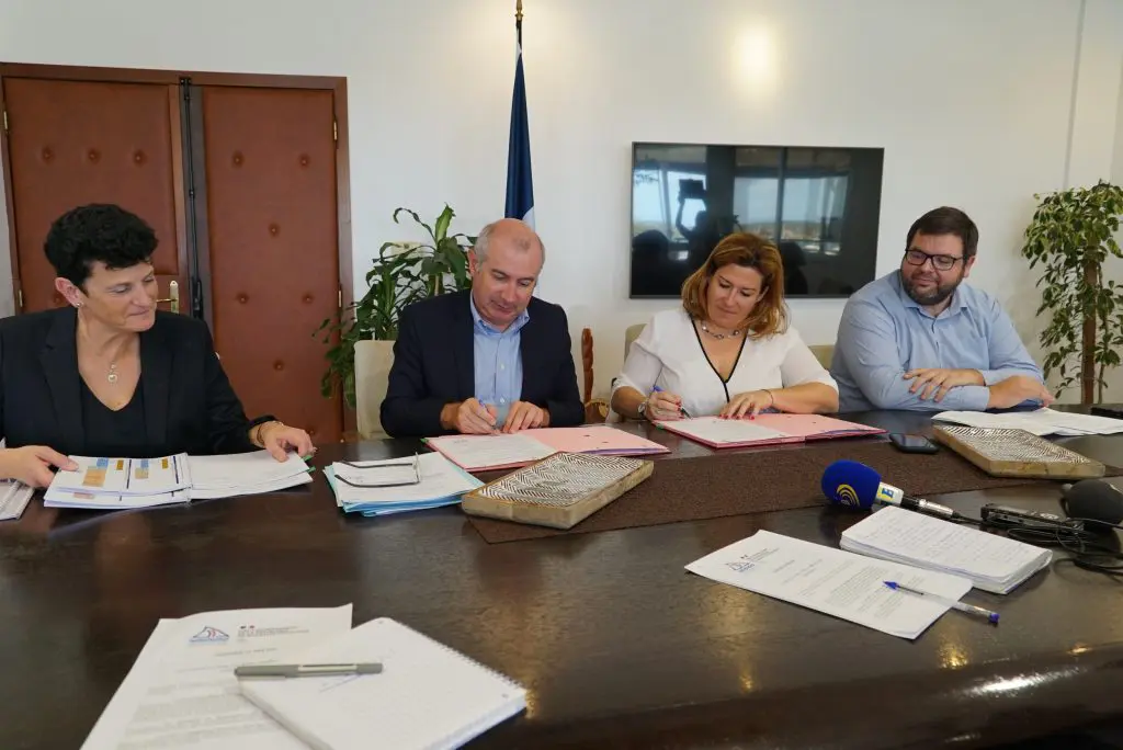 Sonia Backes, la présidente de l’assemblée de la province Sud, et Laurent Prévost, Haut-commissaire de la République, ont signé jeudi 27 août 2020 à l’hôtel de la province Sud l’avenant au Contrat de développement État-Province Sud 2017-2021, la convention de financement FEI 2020, et la charte d’engagement trajectoire Outre-mer 5.0.