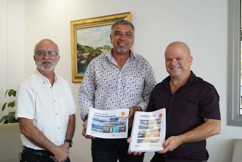 Philippe Blaise, le premier vice-président de la province Sud, a reçu ce matin des mains de Philippe Darrason, le président du Cluster maritime en Nouvelle-Calédonie, et de son manager Lionel Loubersac, le « livre bleu ». Fruit d’un travail de longue haleine, cet ouvrage représente une véritable feuille de route pour penser une « politique maritime pays ».
