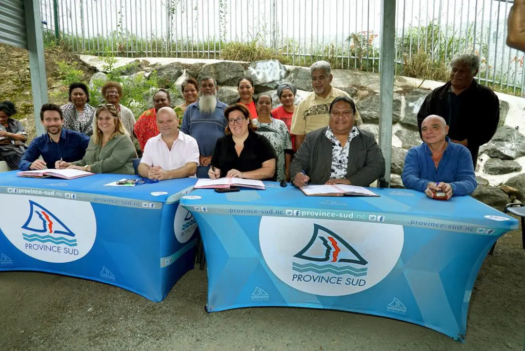 Ce mercredi 19 mai 2021, Sonia Backes, la présidente de l’assemblée de la province Sud, Philippe Blaise, le 1e vice-président, et les élus provinciaux, Petelo Sao et Muriel Malfar-Pauga, respectivement président et présidente de la SIC et de la SEM Agglo, ont signé un protocole d’accord sur la rénovation des 64 villas des Hauts-de-Marconi. Cette signature acte l’engagement de la collectivité, de la SIC et de la SEM Agglo, pour répondre rapidement à l’insécurité des foyers dont les habitations n’ont cessé de se dégrader, notamment suite au passage du cyclone Niran et de la dépression forte Lucas en début d’année.
