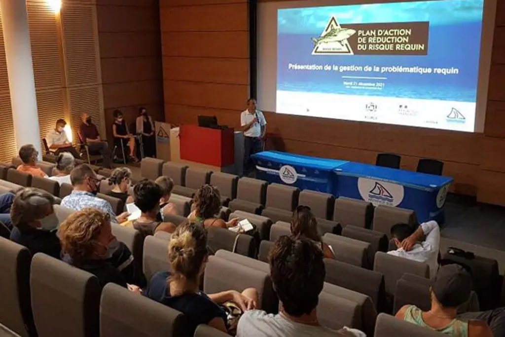 Les acteurs du Plan d’actions de réduction du risque requin réunis dans l’auditorium de la province Sud.