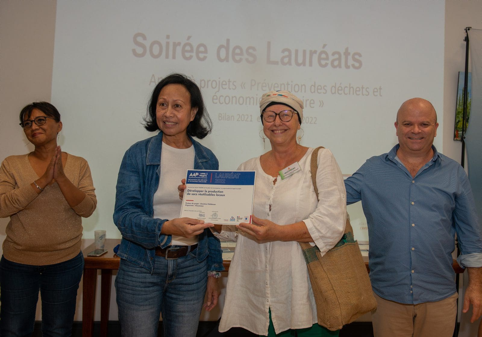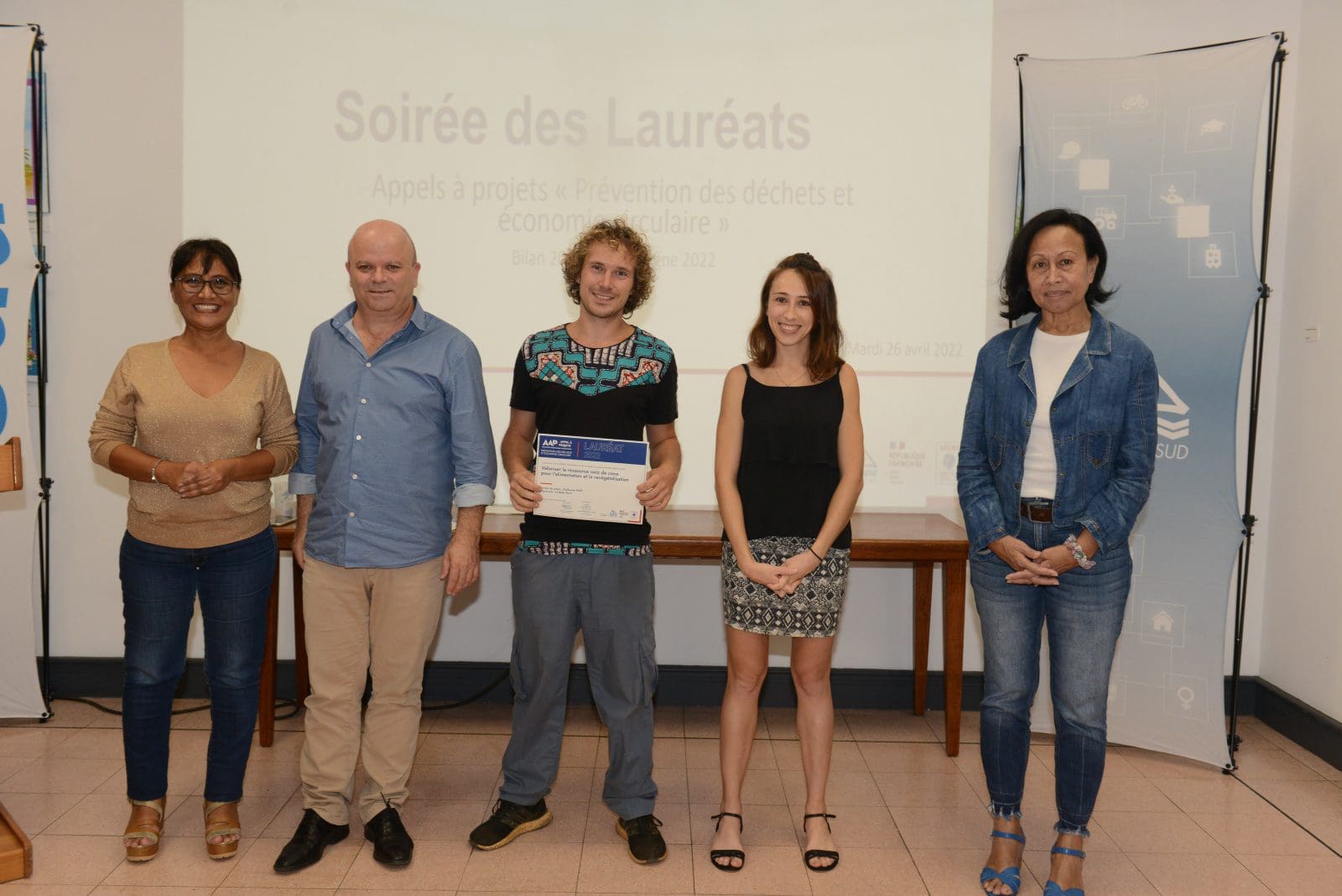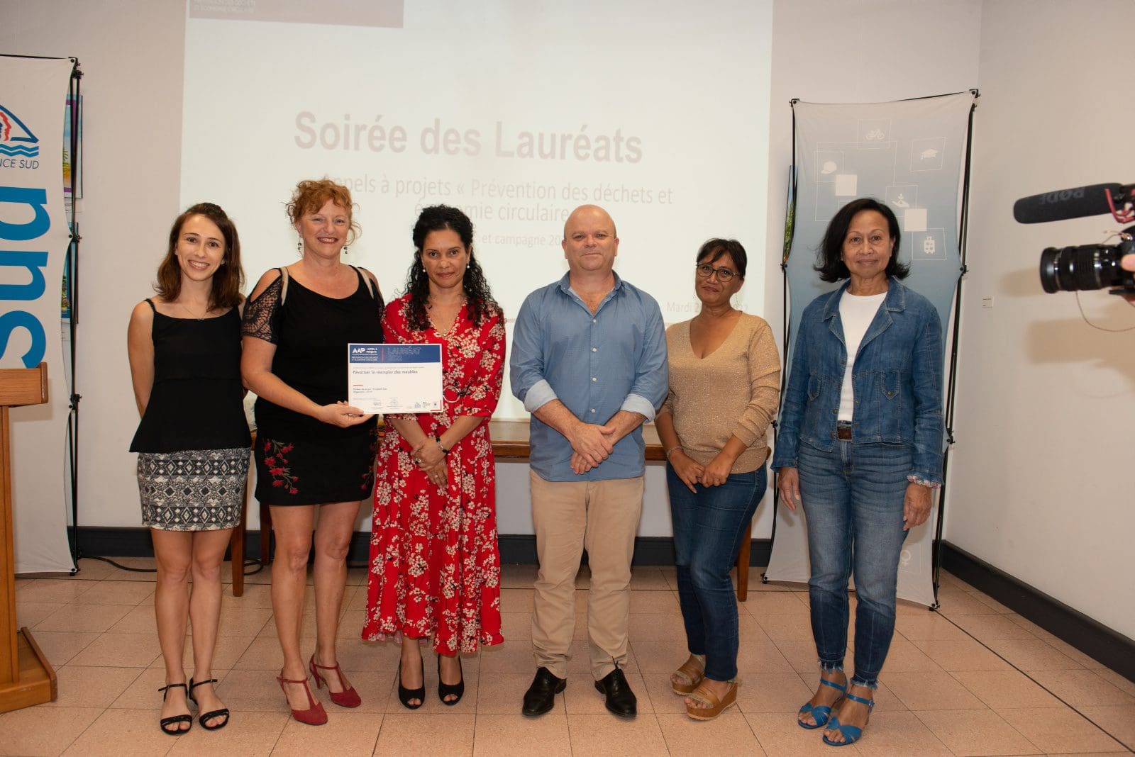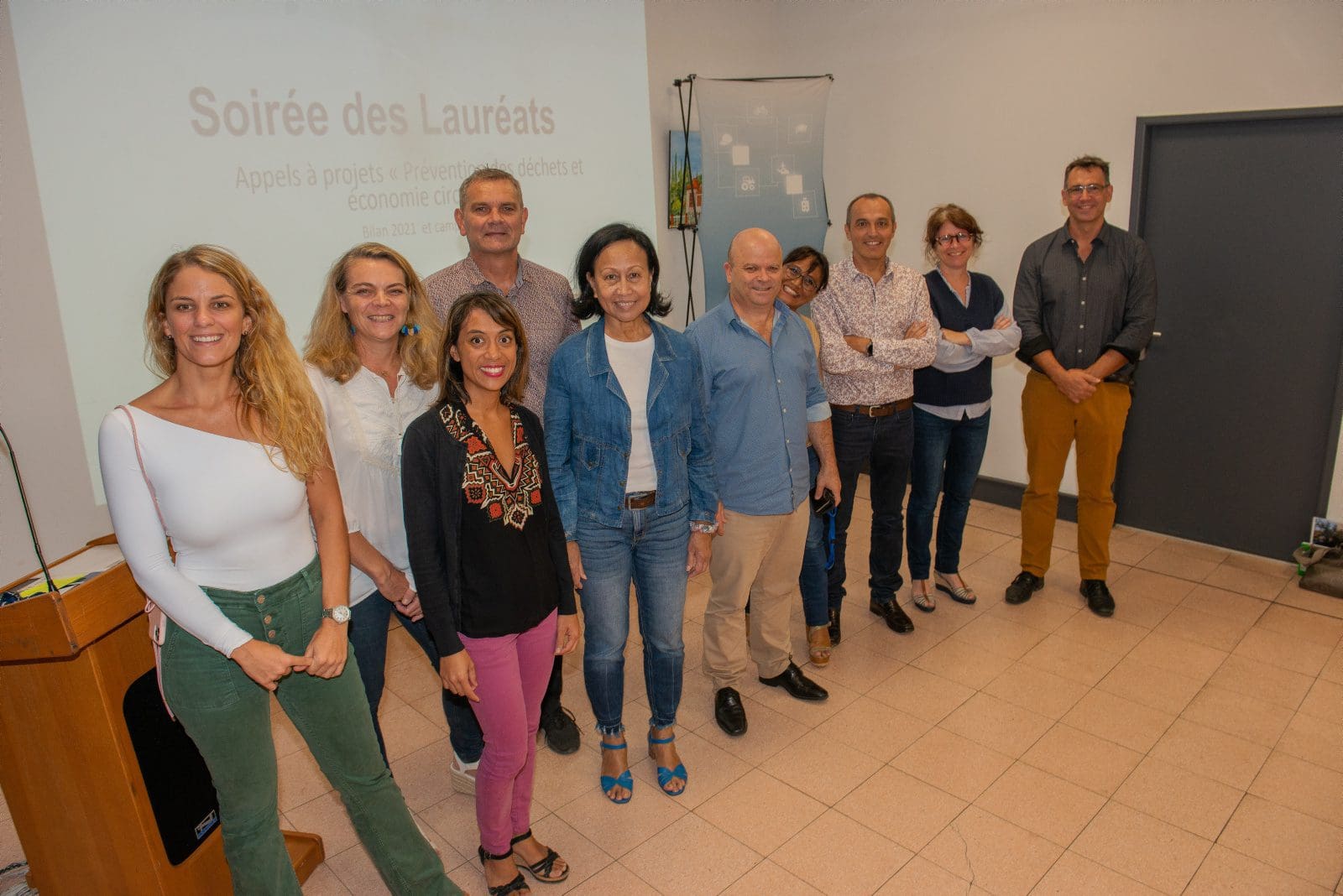 Hier soir, Philippe Blaise, le premier vice-président de la province Sud, et les élues provinciales, Françoise Suve, rapporteur de la commission de l’environnement et Christiane Saridjan-Verger, membre de cette même commission, ont eu le plaisir de récompenser 21 lauréats 2021 et 5 lauréats 2020 de l’appel à projet AAP Economie circulaire, lancé par la province Sud et l’ADEME. Une soirée des lauréats qui s’est déroulée dans le hall de l’Hôtel de la province Sud et qui a mis à l’honneur des projets eco-responsables pour une meilleure prévention et gestion des déchets en faveur d’une économie verte et durable.