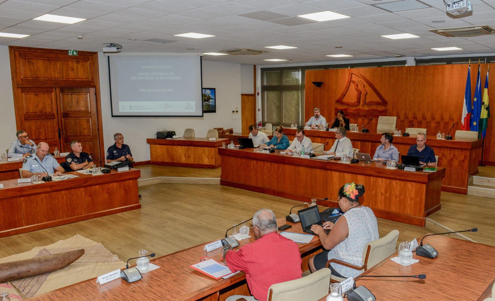Vendredi 29 avril 2022, Grégory Lecru, le Commissaire délégué de la République pour la Province Sud, Yves Dupas, le procureur de la République et Gil Brial, le deuxième vice-président de la province Sud, ont animé le Conseil provincial de la prévention de la délinquance (CPPD) au sein de l’hémicycle de la Province, afin d’établir le bilan des actions menées en 2021 et révéler les projets qui seront réalisés au cours de l’année 2022 en faveur de la protection et de la sécurité des calédoniens. Parmi les actions provinciales figurent notamment : le projet SAM (Sans Accident Mortel) pour lutter contre les addictions et soutenir les jeunes conducteurs ou encore « Bien dans ses claquettes », pour mieux comprendre le comportement des jeunes dès le collège.