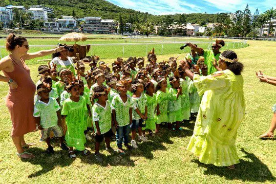 Chants, danses multiculturelles, confections de vêtements traditionnels, expositions, affiches, projections vidéos, écriture et poésies…Tout au long de la journée, c’est avec fierté et engouement que les enfants ont partagé aux autres établissements leurs projets culturels, « l’aboutissement de semaines de travail et d’investissement des équipes éducatives, des enfants et des parents ! » souligne Maîtresse Nina de l’école Noëlle Mouchet : « Aujourd’hui nous sommes trois classes de moyenne et grande section réunis avec les maîtresses titulaires et les maitresses de langues kanaks, notre projet commun était de faire découvrir et montrer les danses kanakes et traditionnelles et de les danser tous ensemble. On a aussi plusieurs chants, en drehu, nengone, tahitien et faka uvea. Les enfants ont beaucoup aimé ce projet, notamment la préparation des costumes qu’ils ont confectionnés avec l’aide de leurs parents et des maitresses de langues kanaks. »