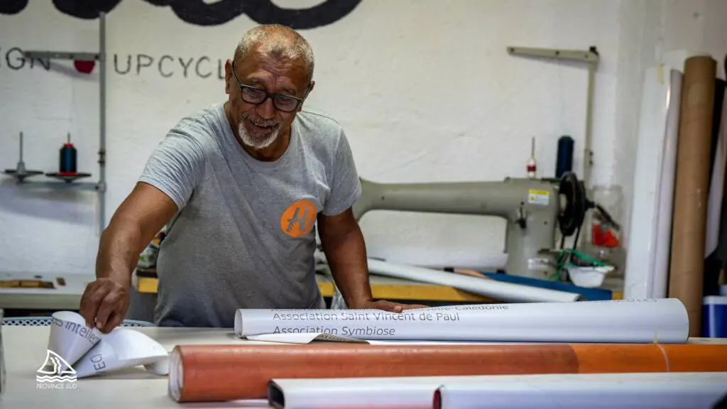 Hanvie est la petite entreprise d’économie sociale et solidaire qui commence à faire parler d’elle ! Sa philosophie repose sur une idée-force : se servir du upcycling comme levier d’insertion professionnelle pour les personnes en situation de handicap. Depuis un an, elle est engagée avec la province Sud, pour développer les compétences des travailleurs en situation de handicap. Philippe Blaise, le 1er vice-président et Nina Julié, élue de la province Sud se sont rendus dans ses locaux à Magenta pour rencontrer l’équipe encadrante et les personnes qui suivent le parcours d’insertion au sein de l’entreprise.