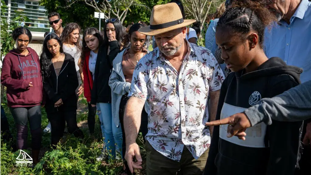 Accompagné des équipes de la Direction provinciale du développement durable des territoires (DDDT), Philippe Blaise était ravi d’échanger avec une jeunesse consciente des bénéfices à la fois psychologiques et physiques du jardinage, qui relève d’un « langage universel et fédérateur » : « Jardiner c’est se retrouver autour de la terre et des racines pour mener des actions communes et recréer du lien social et humain. Jardiner revient à s’entraîner intellectuellement à des tâches complexes car ce n’est pas si simple de planter : il faut comprendre la terre, la nature, les plantes, leurs besoins … Il y a là un véritable travail à la fois physique et intellectuel pour que le projet porte ses fruits. »