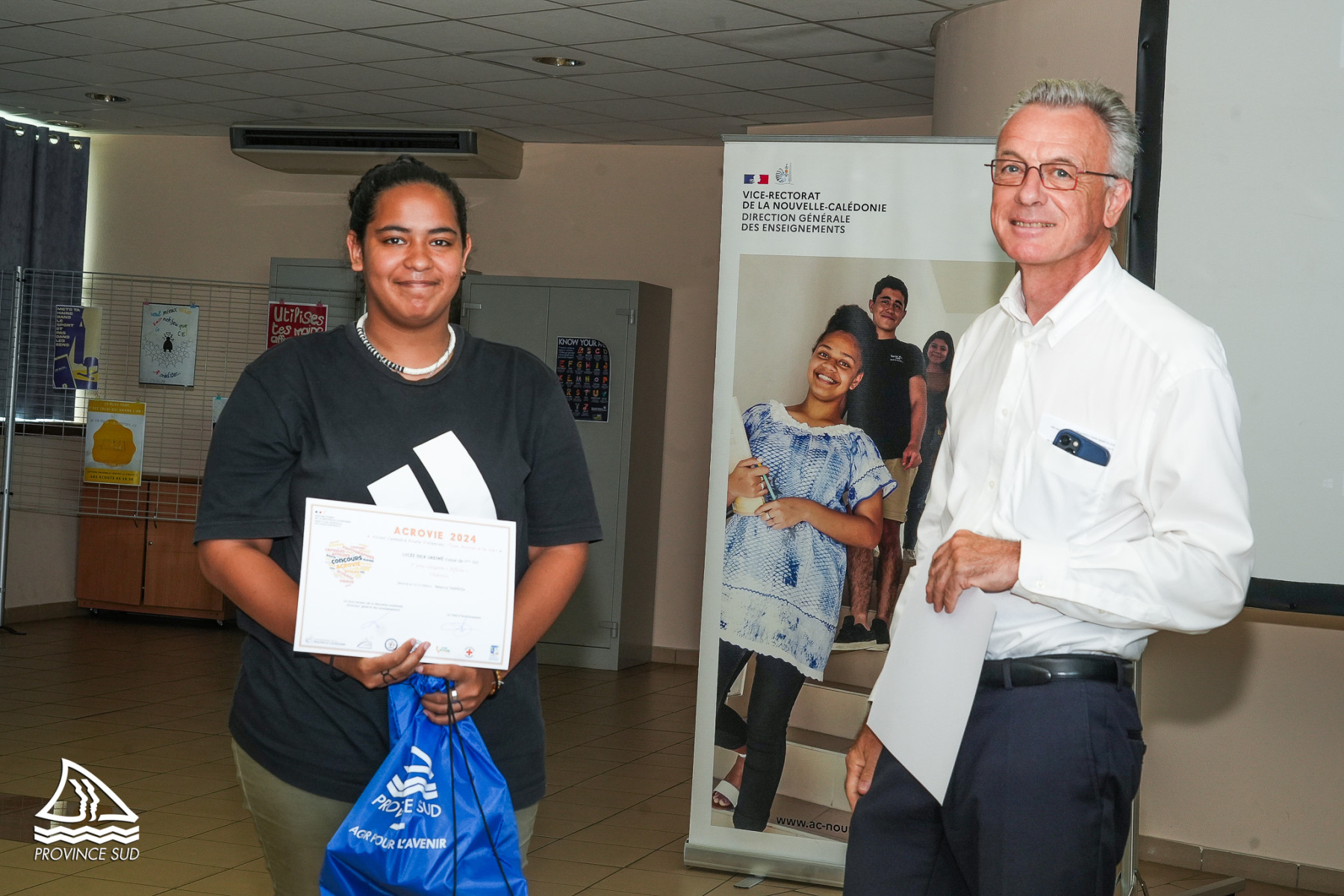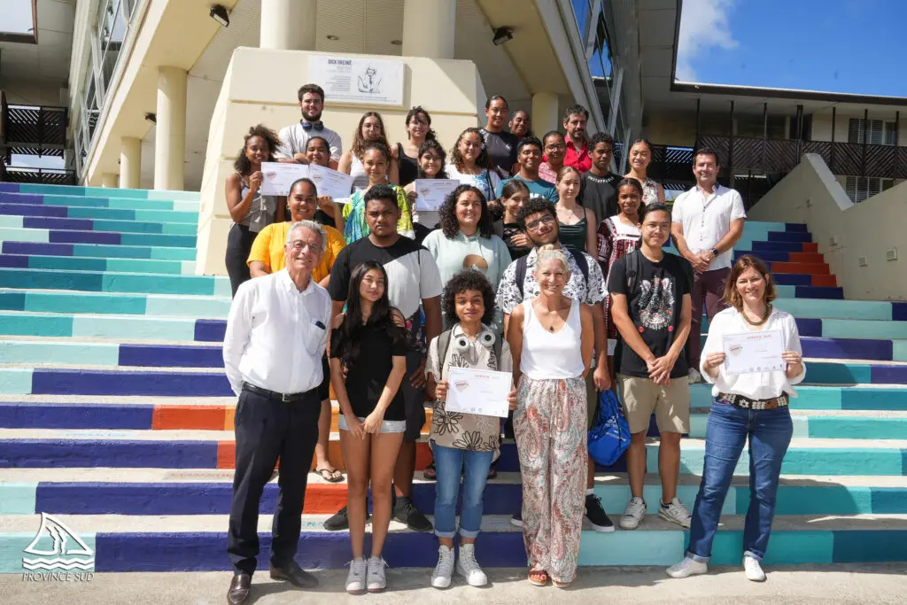 Ce mercredi matin, les élèves du lycée Dick Ukeiwé (terminale T1, de première 101 et de seconde Arts 213)  se sont vu remettre le 1er prix dans la catégorie affiche sur la thématique « Lutte contre les violences aux personnes ». Ils ont été félicités par Gil Brial, 2e vice-président de la province Sud en charge de l’enseignement et le vice-recteur.